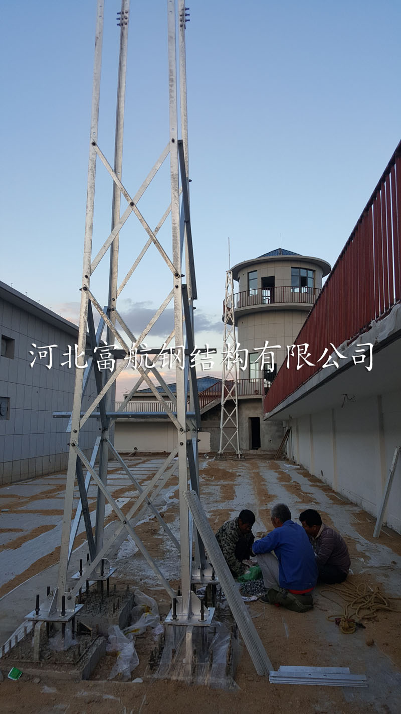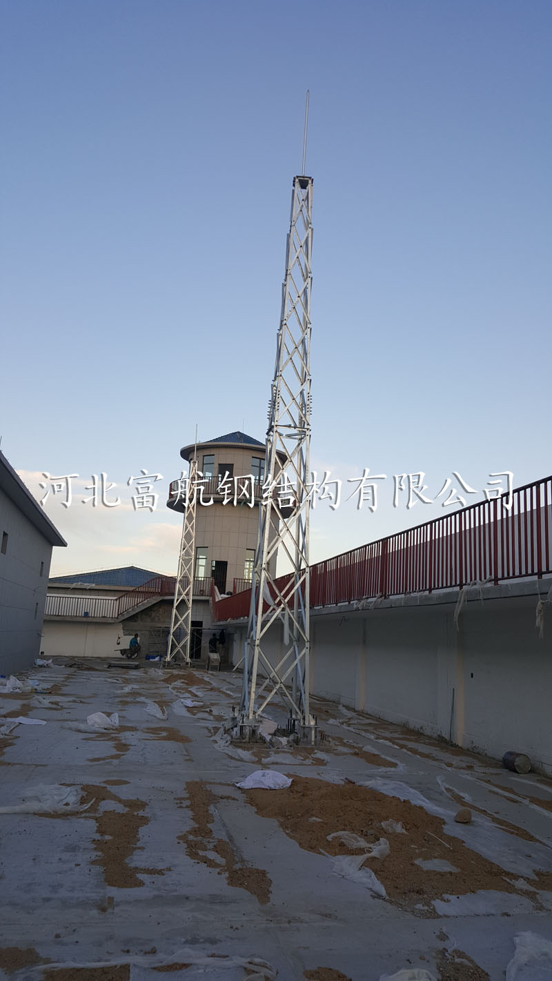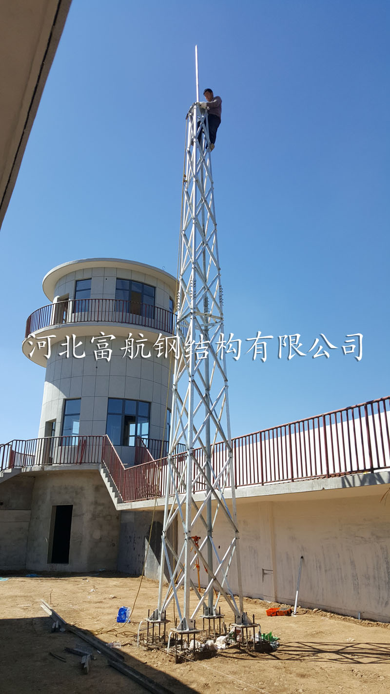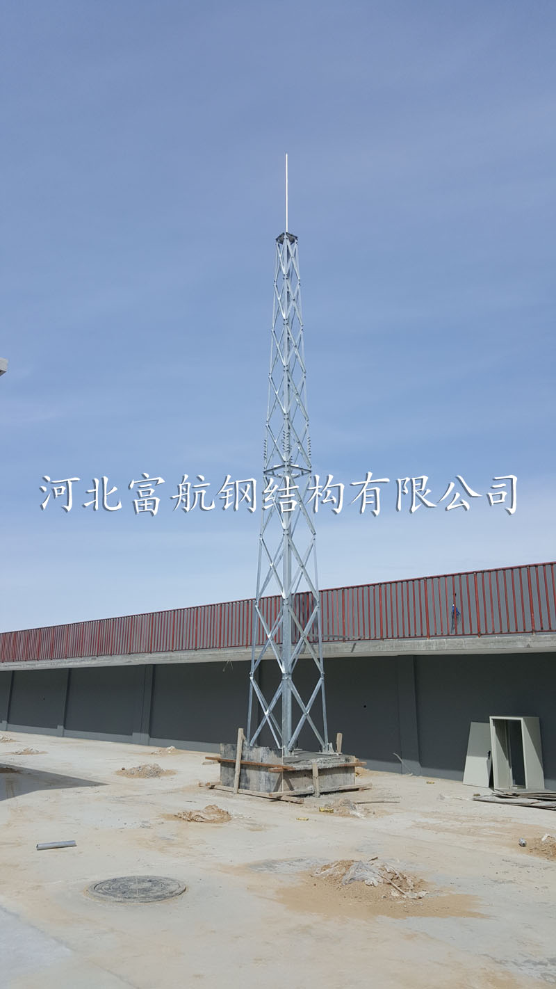 内蒙集宁15m角钢避雷塔24座 避雷塔,又称防雷塔、消雷塔,根据所用材料不同又可分为圆钢避雷塔和角钢避雷塔,。 根据功能不同又可分为避雷针塔和避雷线塔两种,圆钢避雷塔因其造价低应用比较广泛。避雷塔材料可采用圆钢、角钢、钢管、单根钢管等,高度范围10米—60米。 富航铁塔生产的避雷塔包括:角钢避雷针塔,避雷装饰塔,消雷塔等。 主要用途:应用于通讯基站、雷达站、机场、油库、导弹阵地、PHS和各类基站的直击雷保护以及建筑物楼顶、发电厂、森林、燃油库、气象站、工厂车间、造纸厂、等重要场所。