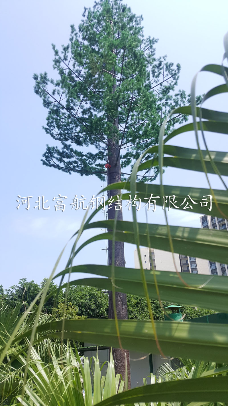 仿生树又叫仿生塔用途最多的是仿生通讯塔,属于通信发射塔技术领域。 是让通信铁塔与周围的自然环境相协调,有效地解决了风景区等地建站难的问题,其优点是保持了原有单管塔的所有优点, 在其外形上作了重大的突破、改进,以自然生长的松树,樟树等为仿真的造型样本,设计素描图和电脑效果图,制订雕塑和喷涂工艺程序,对单管塔仿真伪装,使人们察觉不到塔的存在,把它融入了周围的自然环境中。 仿生树种类繁多,主要分为仿迎客松、仿椰树、仿棕桐树等多种仿生杆塔,安装在一些风景区内。 1、结构精致逼真,外形美观幽雅。由于仿生塔是仿照实际植物所做,所以外形酷似真实仿照物,因为制作精细,且安装在风景区、公园、广场与其树种相似的树丛中,贴近自然且融于自然,新颖独特的大线架替了传统的平台隐藏在枝叶中不会破坏塔身的整体美,仿生塔人性化的外形设计,具有生机勃勃的时代气息